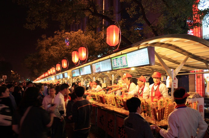 добро пожаловать на "Обжорный" ряд на главной пешеходной зоне Пекина -