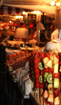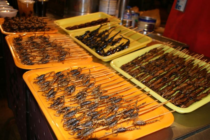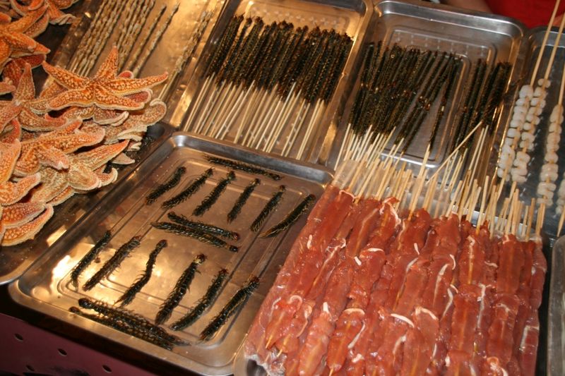 Мало не покажется. Даже того, что увидишь и поймешь, что "это" такое с лихвой хватит на то, чтобы впечатления были - супер. "Обжорным" ряд мы назвали с большой долей юмора. Вряд ли вы захотите там что-то попробовать. Разные "гады" на палочках вызывают шок и впечатляют несказанно.