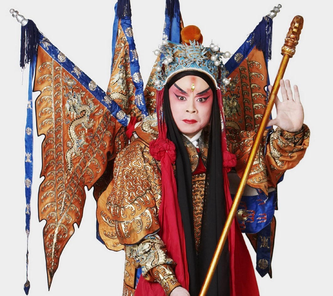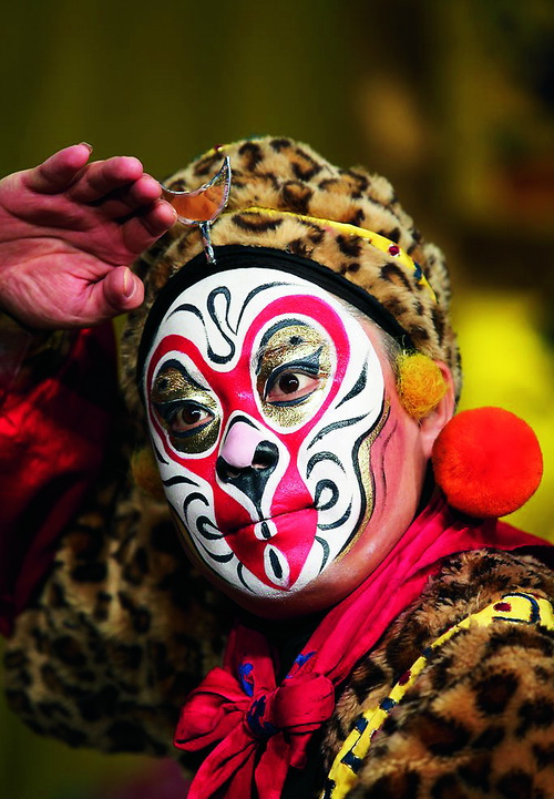 «Говорящая» окраска лица часто дополняется символическими рисунками.Наиболее престижными считались роли мужчин «шэн», а затем шли женские роли, цзин и роли комиков.