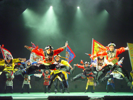 Артисты выступают в густых грим-масках - ляньпу, головные уборы и сценические костюмы - изысканны, ярки и красочны.