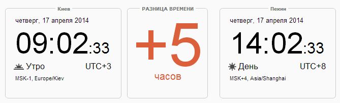 Разница во времени между Киевом и Пекином составляет 5 часов, аналогичная разница у Пекина с Минском.