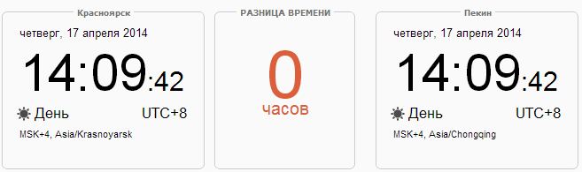 Разницы во времени между Пекином и Красноярском нет.