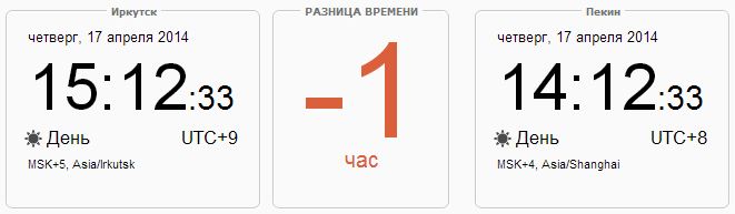 Разница во времени между Пекином и Иркутском - один час в пользу последнего.