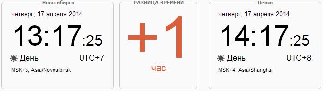 Разница во времени между Пекином и Новосибирском - 1 час.