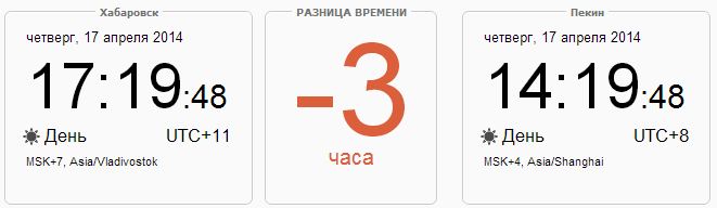 Разница во времени между Пекином и Хабаровском - минус три часа.