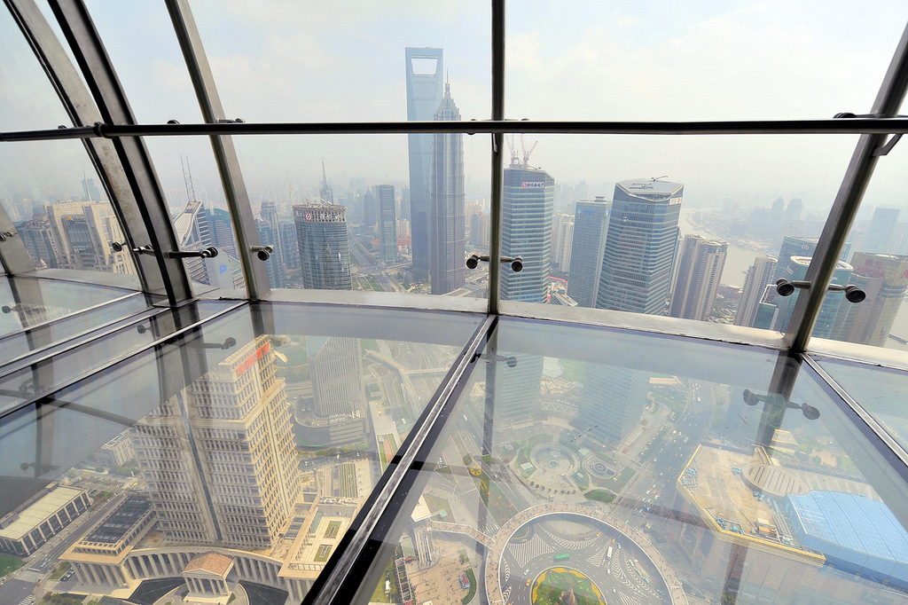 На 87 этаже - огромные окна бара Шанхая «Девятое облако» пятизвездочного отеля Гранд Хайятт